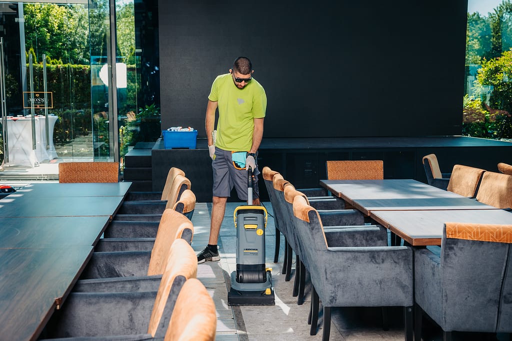 Професионално машинно почистване на твърди подови настилки – гранитогрес, мрамор, теракот, паркет, мозайка и други. Подходящо за големи площи, търговски и обществени обекти, както и за силно натоварени зони.